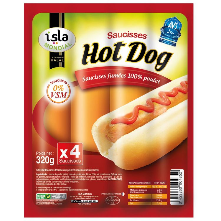 SAUCISSE HOT-DOG 100% VOLAILLE 320G
