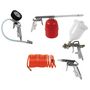Complet, ce kit comprend 5 accessoires : 1 pistolet de peinture, 1 pistolet de gonflage, 1 pistolet de soufflage, 1 pistolet de huilage et tuyau à air comprimé.