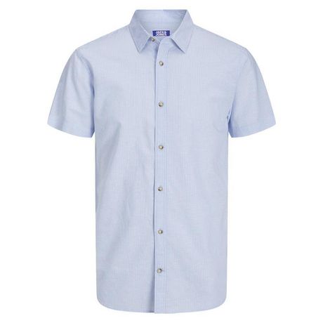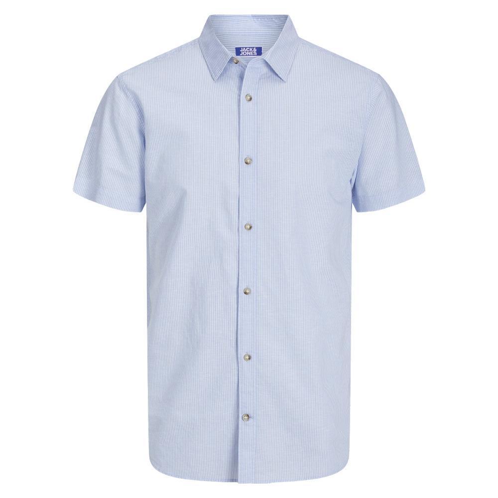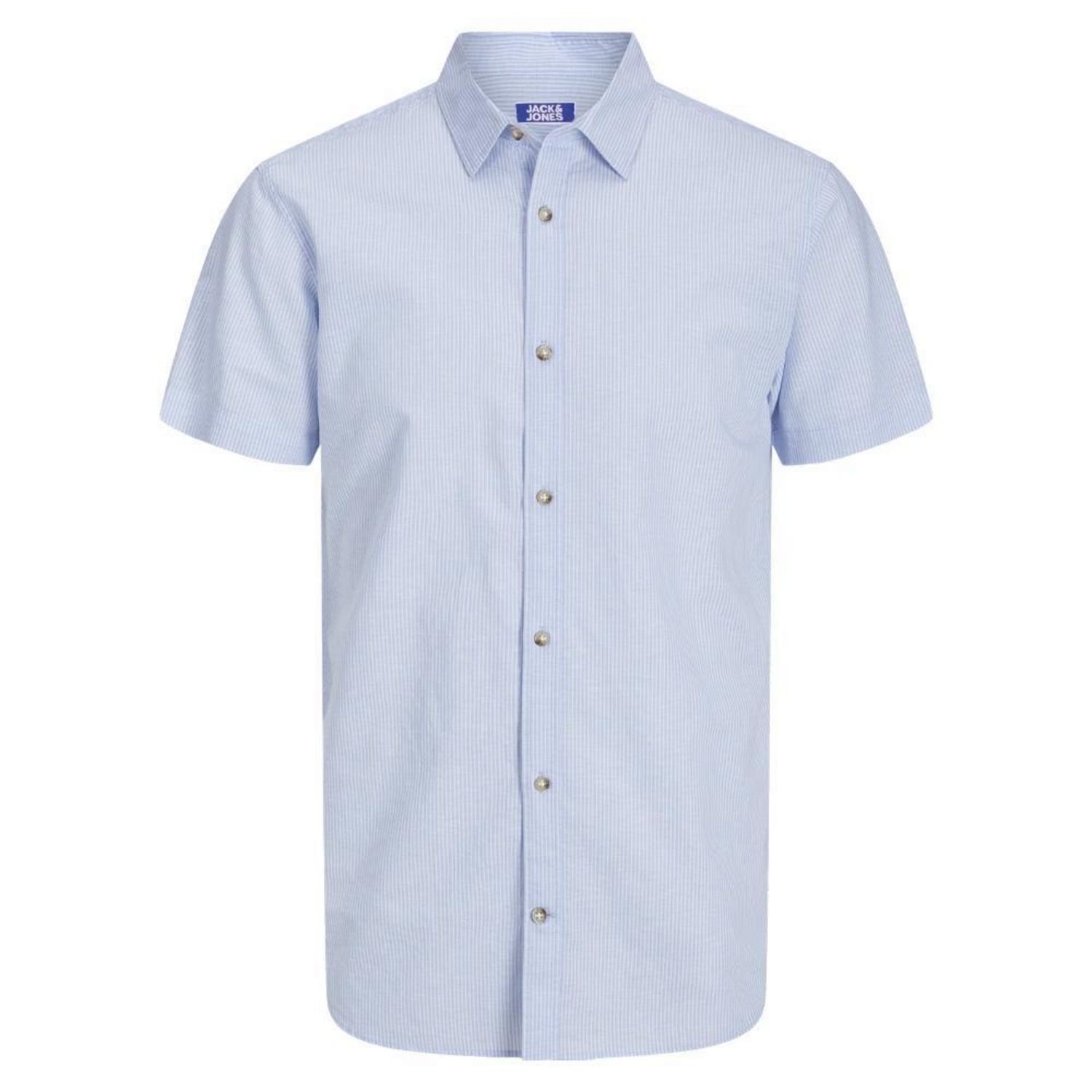 Optez pour la chemise Jack & Jones !Manches courtesFermeture à boutonsColoris : Bleu/BlancRayuresComposition : 70% coton , 30% lin