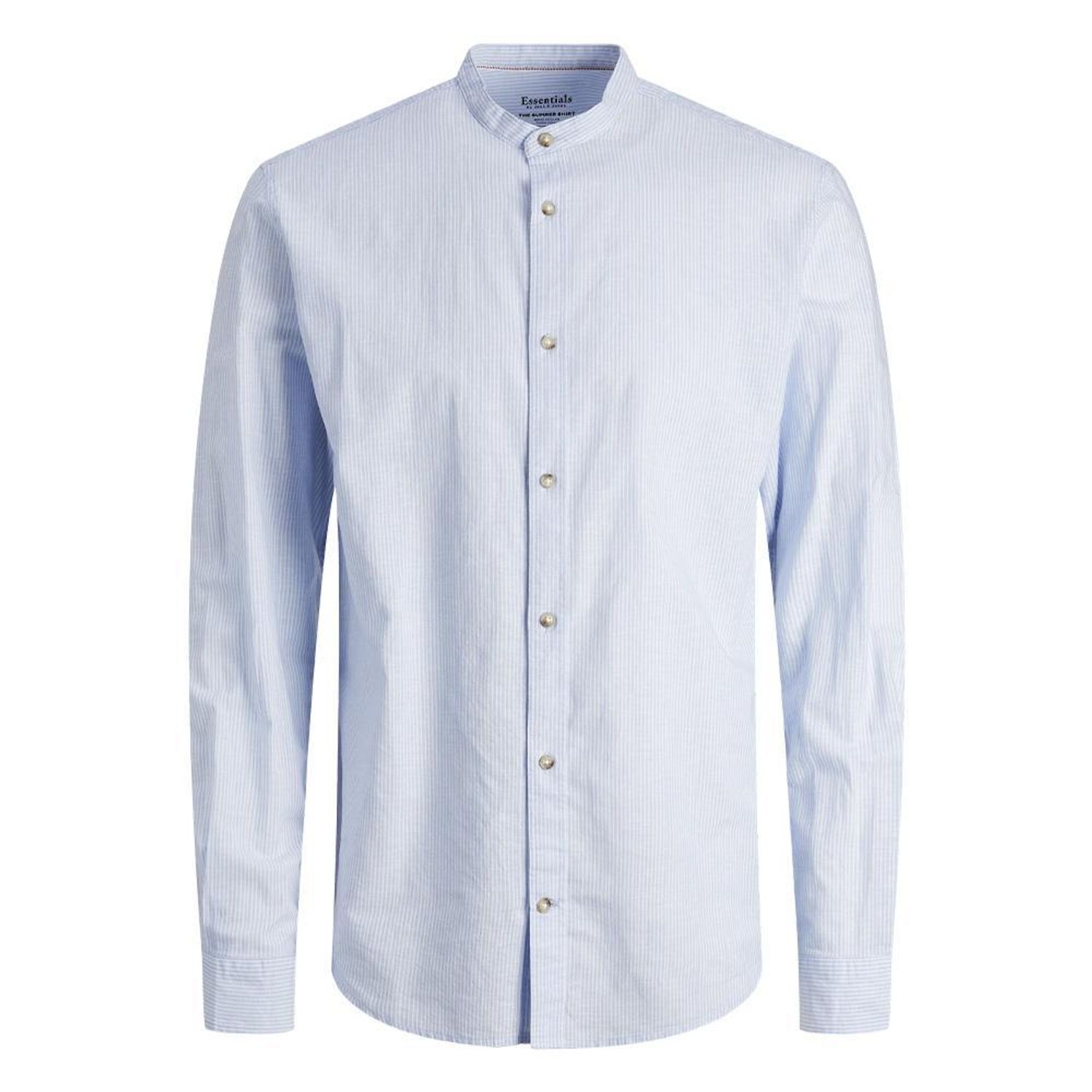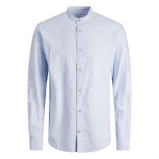 Chemise pour homme de la marque Jack & Jones !- Couleur : Bleu à Rayures- Coupe altique- Col mao- Manches longues- Composition : 70% coton, 30% lin