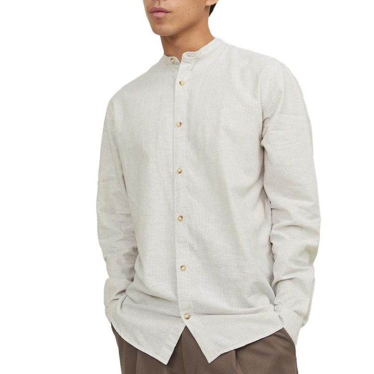 Optez pour cette chemise Jack & JonesColoris : Beige/BlancheCol mao Manches longuesComposition : 43 % coton, 30 % coton recyclé, 27 % lin