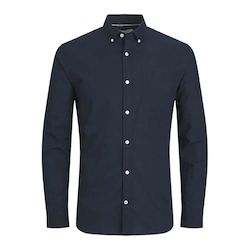 Craquez pour la chemise pour homme proposée par la marque Jack & Jones ! Coloris : Marine Manches longues Fermeture boutons Poche poitrine Coupe Slim 100% Coton