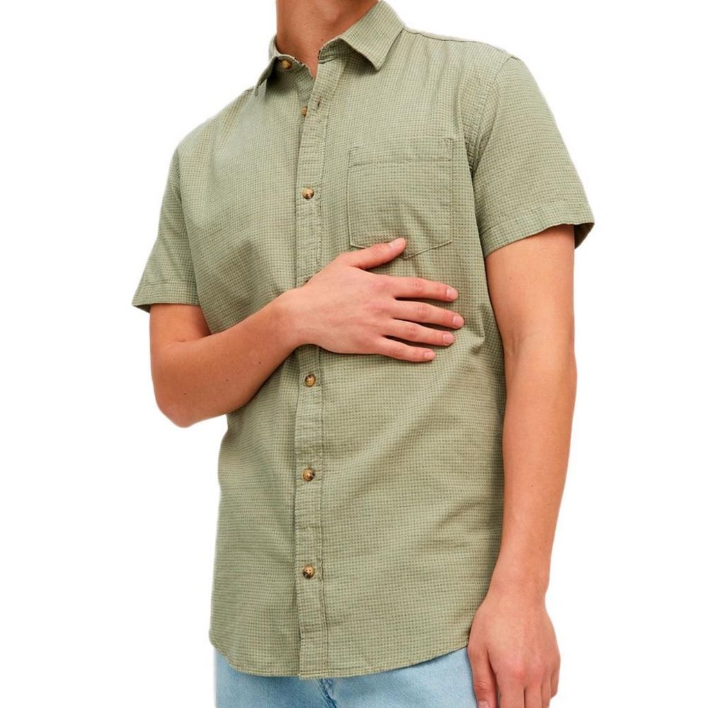 Découvrez la Chemisette homme de la marque JACK & JONES ! Couleur : KakiFermeture boutons Coupe altique Manches courtesComposition : 60% Coton, 40% Polyester