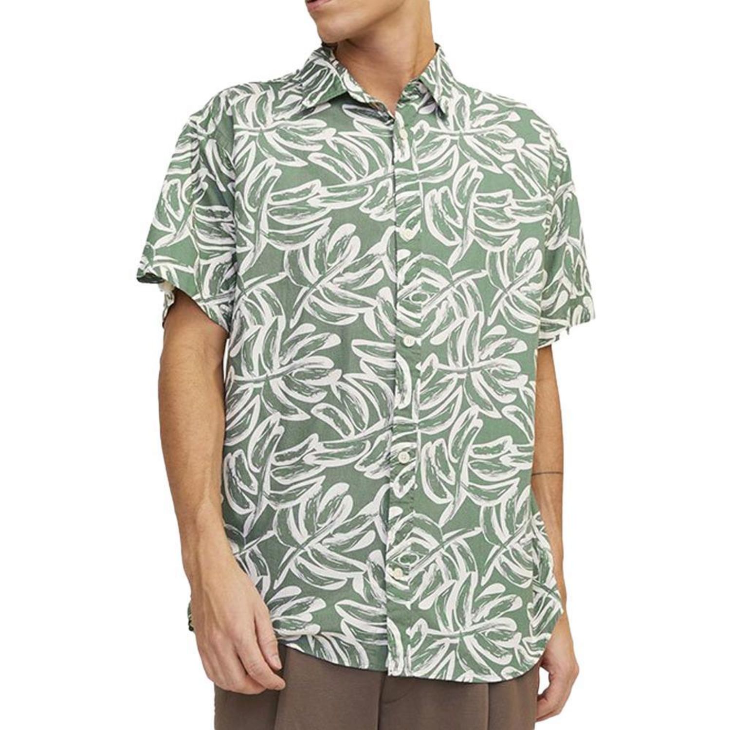Craquez pour la chemisette proposée par la marque JACK & JONES !Coloris : KakiManches courtes Col à reversFermeture par boutons Tissu impriméComposition : 100% Coton