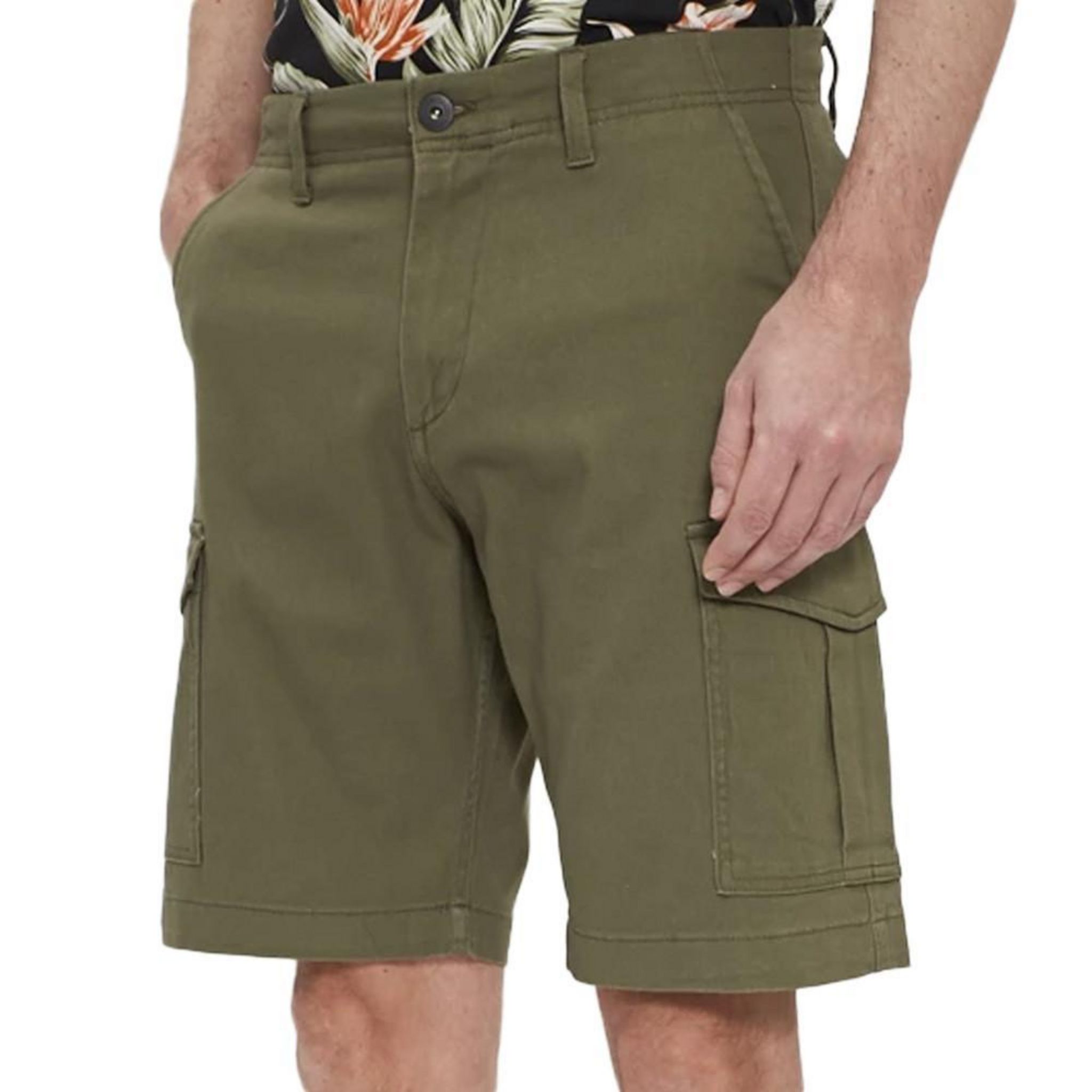 Optez pour le short de la marque JACK & JONES ! Coloris : Kaki Short cargo Poches latérales, poches arrière, poches cargo Fermeture par zip et bouton Composition : 98% Coton, 2% Élasthanne