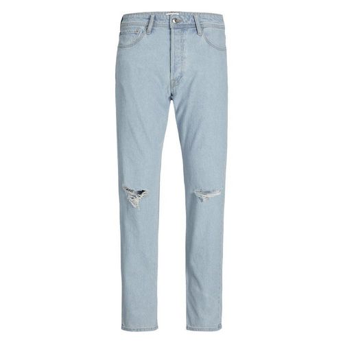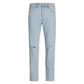 Optez pour ce jean slim Jack & JonesColoris : Bleu clairDéchirures ouvertesComposition : 100% CotonPoches arrière, Poche pour la petite monnaie, Poches avantBraguette à boutonsJean coupe décontractéeAttention, les tailles indiquées correspondent aux tailles US !