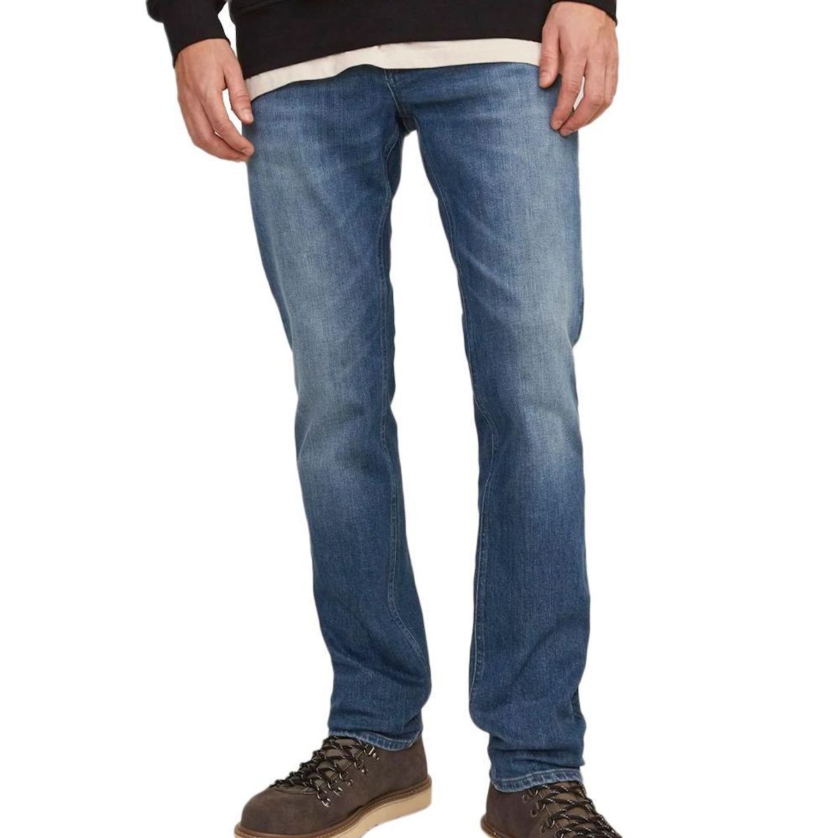 Optez pour ce jean Jack & JonesColoris : Bleu Composition : 80% Coton, 13% Polyester, 5% Coton recyclé, 2% ÉlasthanneBraguette à boutonsPoches arrière, Poche pour la petite monnaie, Poches avantDélavage clair pour un look usé et vieilliCoupe slim/droite avec une taille altiqueGenoux et des bas de ja