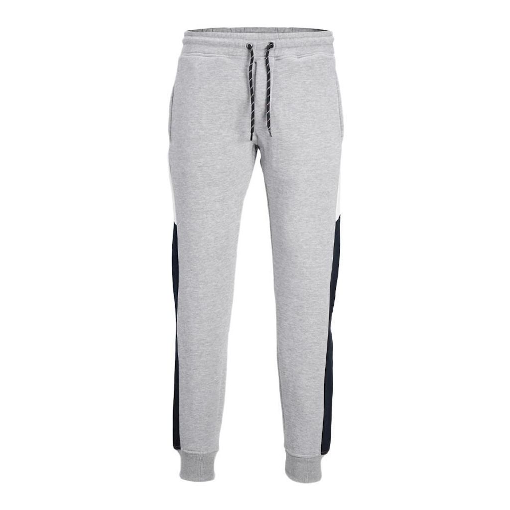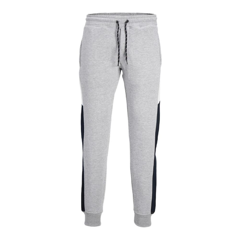 Craquez pour le jogging de la marque JACK & JONES !Coloris : Gris Slim fit Ceinture élastique Cordon de serrage Bandes sur les cotés Composition : 60% Coton, 40% Polyester