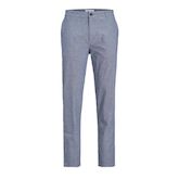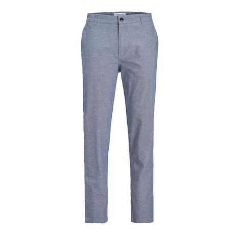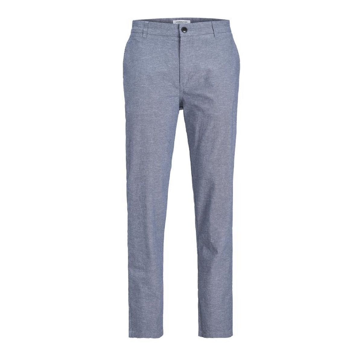Craquez pour le pantalon de la marque JACK & JONES !- Coloris : Bleu- Coupe standard- Poches arrières- Passent de ceinture- Composition : 80% Coton, 18% Lin, 2% Élasthanne
