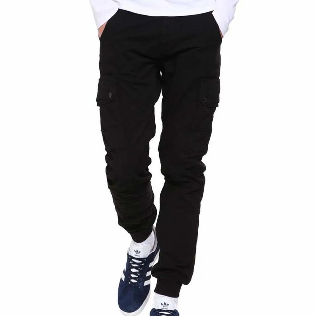 Craquez pour ce pantalon homme de la marque Jack & Jones ! Couleur : Noir Pantalon cargo Poches boutonnées sur les cuisses Poches latérales Passants pour ceinture Elastique de maintien sur le bas des jambesComposition : 98% coton, 2% élasthanne Attention, les tailles indiquées correspondent aux tailles US !