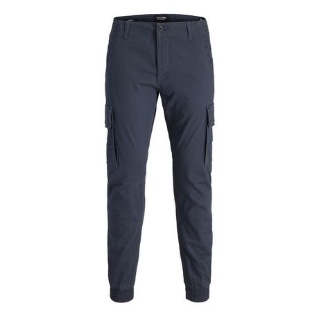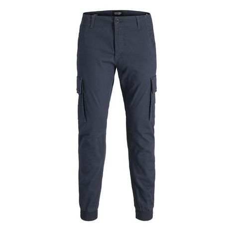 Craquez pour ce pantalon homme de la marque Jack & Jones ! Couleur : MarinePantalon cargo Poches boutonnées sur les cuisses Poches latérales Passants pour ceinture Elastique de maintien sur le bas des jambesComposition : 98% coton, 2% élasthanne Attention, les tailles indiquées correspondent aux tai
