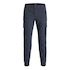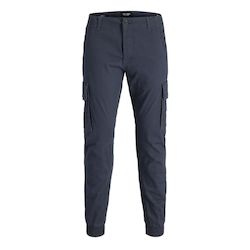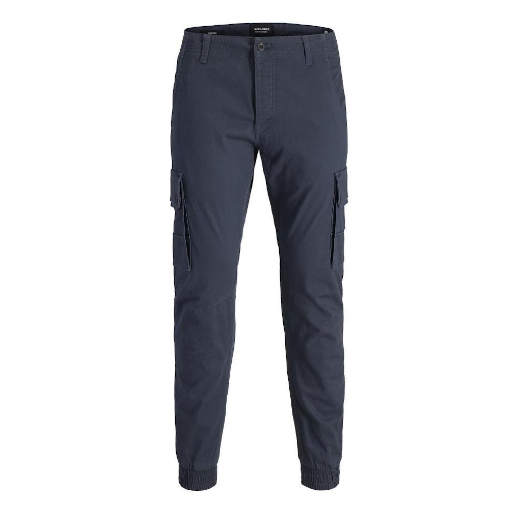 Craquez pour ce pantalon homme de la marque Jack & Jones !- Couleur : Marine- Pantalon cargo- Poches boutonnées sur les cuisses- Poches latérales- Passants pour ceinture- Elastique de maintien sur le bas des jambes- Composition : 98% coton, 2% élasthanneAttention, les tailles indiquées correspondent