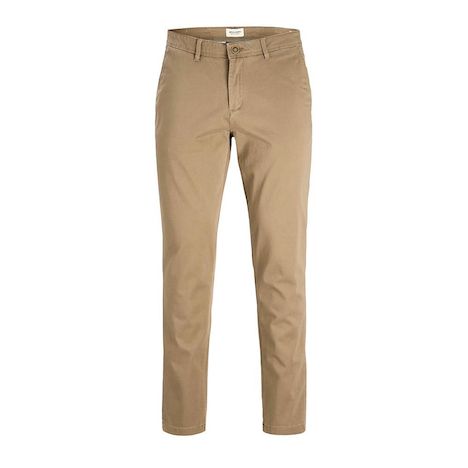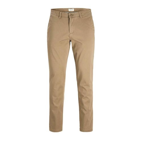 Optez pour ce pantalon chino Jack & JonesColoris : BeigeCoupe droite Bas de jambe fuseléComposition : 98% Coton, 2% ÉlasthanneFermeture par bouton et braguette zippée