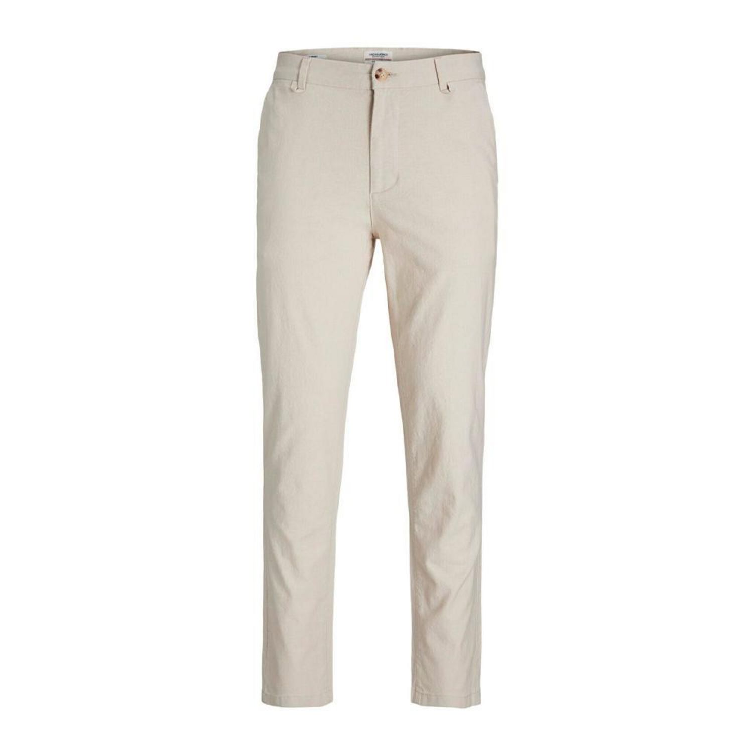 Craquez pour le pantalon de la marque JACK & JONES !- Coloris : Écru- Coupe standard- Poches arrières- Passent de ceinture- Composition : 80% Coton, 18% Lin, 2% Élasthanne