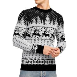 Caquez pour le pull de la marque JACK & JONES Coloris : Marine/Blanc Col rondManches longuesTissu imprimé noëlAjustement: Regular FitComposition : 100% acrylique
