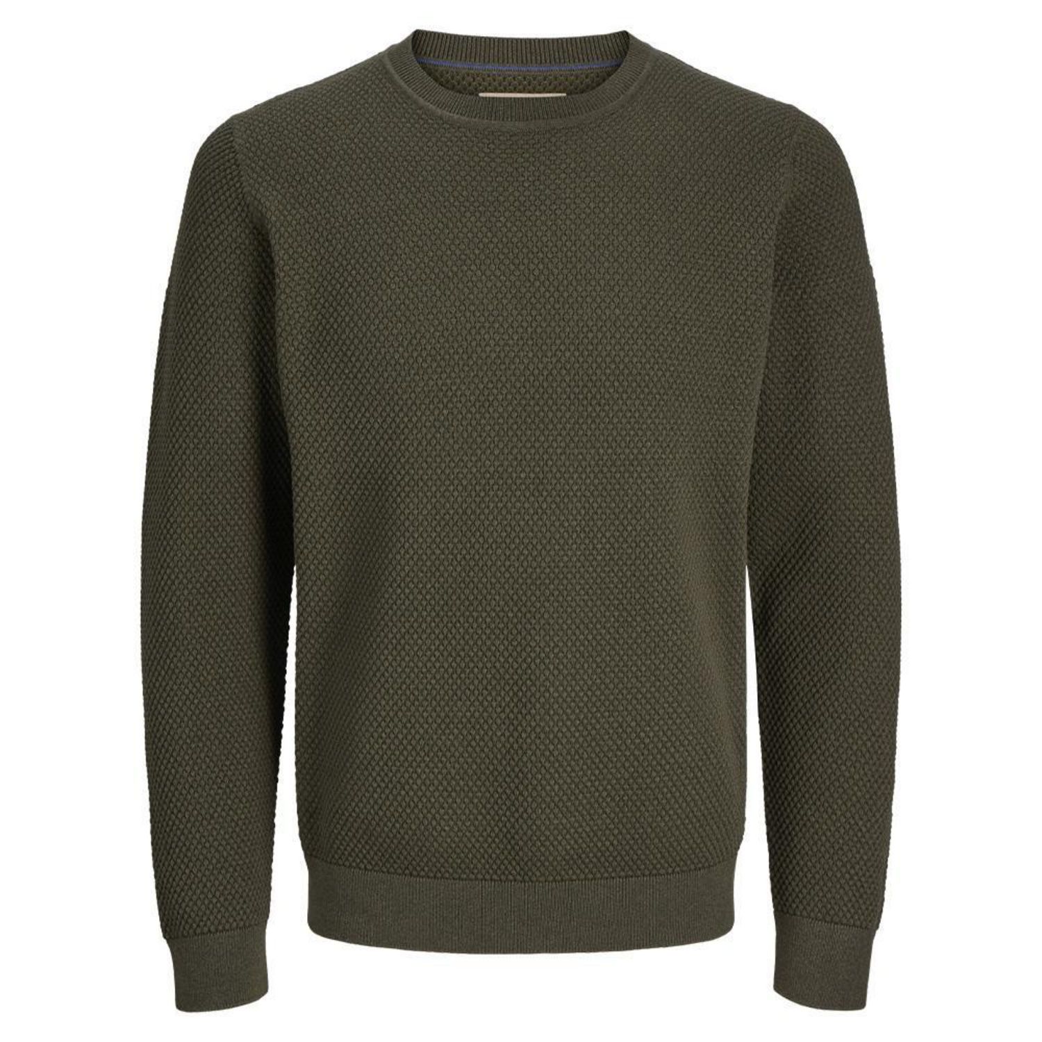 Optez pour le pull homme J&J !Col rondColoris : KakiManches longuesMaille texturéeComposition : 50% coton , 50% polyester