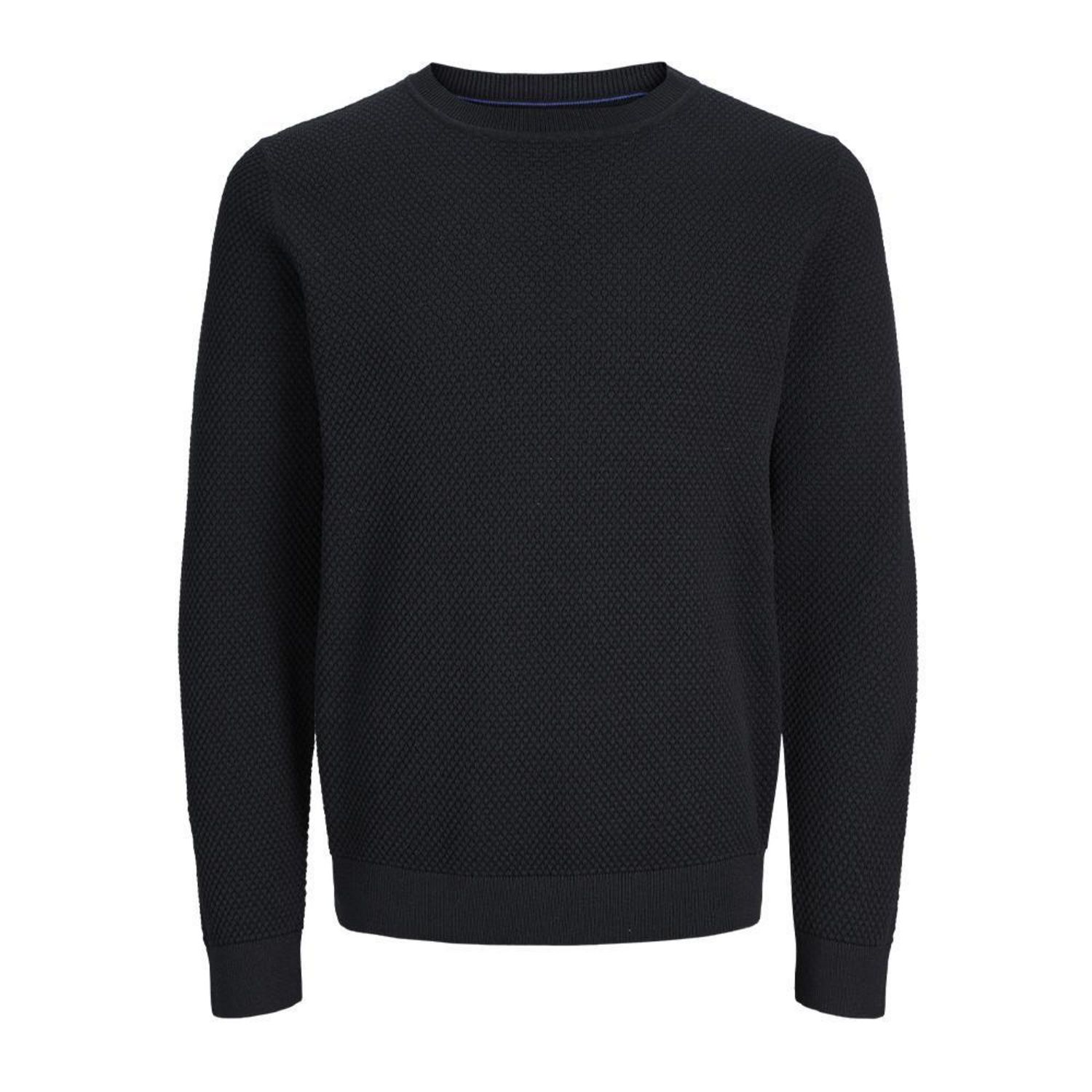 Optez pour le pull homme J&J !Col rondColoris : Noir Manches longuesMaille texturéeComposition : 50% coton , 50% polyester