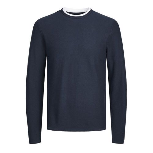 Optez pour ce pull de la marque Jack & JonesColoris : Marine Col rondManches longuesComposition : 100% coton