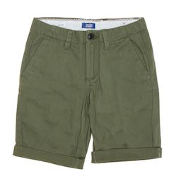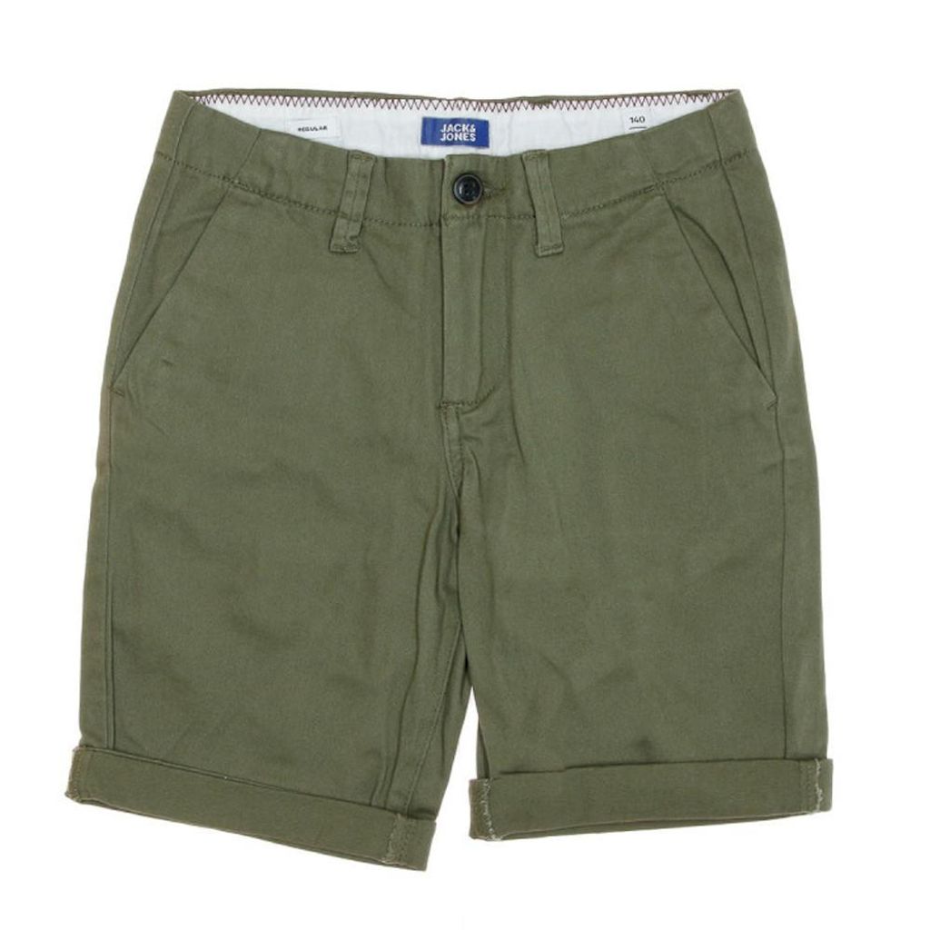 Découvrez ce short pour Garçon de la marque JACK & JONES !- Couleur : Kaki- Coupe regular- Braguette zippée- Passants pour ceinture- 4 poches- Composition : 98% coton, 2% élasthanne
