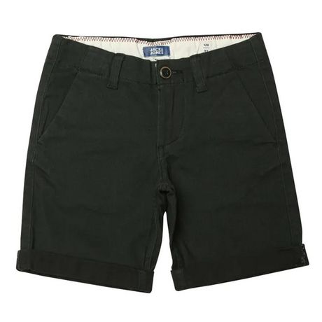 Découvrez ce short pour Garçon de la marque JACK & JONES ! Couleur : Noir Coupe regular Braguette zippée Passants pour ceinture 4 poches Composition : 98% coton, 2% élasthanne