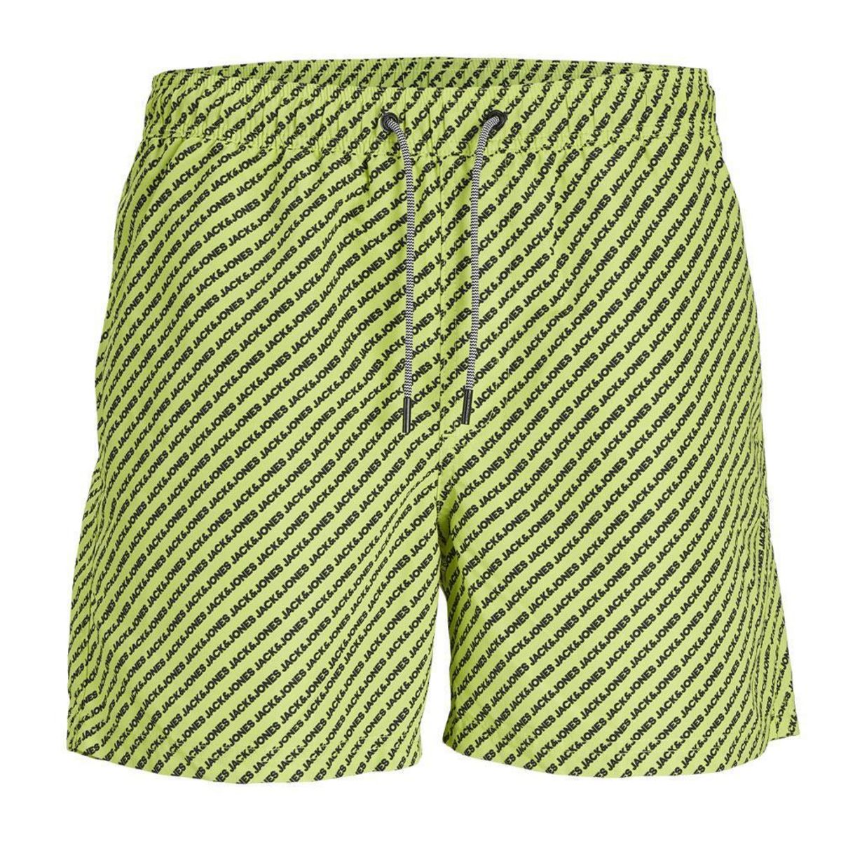 N'attendez plus pour commander ce short de bain de la marque Jack & Jones !Couleur : Vert, NoirCoupe altiqueCeinture élastiqueCordons de serrageMotifs ImprimésSlip en filet intégréComposition : 100% polyester