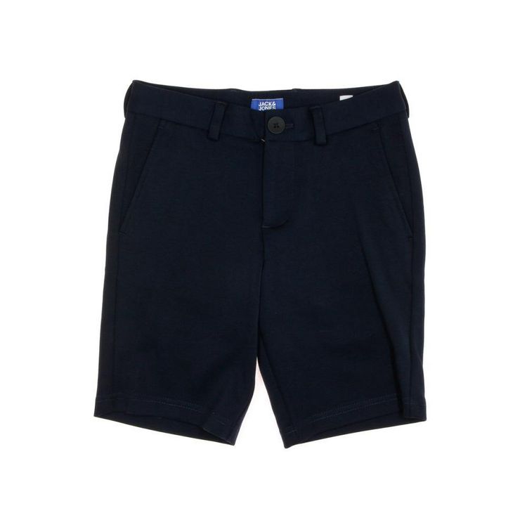 Short garçon de la marque Jack & Jones Fermeture bouton et zip 4 poches Coloris : Bleu Marine Composition : 75% polyester , 22% viscose , 3% élasthanne