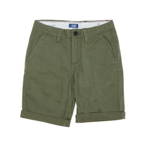 Short garçon de la marque Jack & Jones Coloris : Kaki Coupe chino Fermeture bouton et zip Taille élastique réglable 4 poches Composition : 98% coton, 2% élasthanne