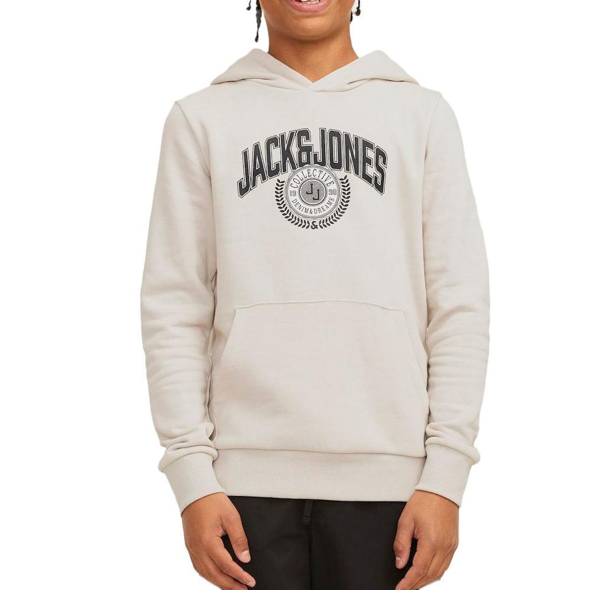 Craquez pour le sweat de la marque JACK & JONES !Coloris : Écru CapucheManches longuesImprimé sur la poitrineComposition : 60% coton, 40% polyester