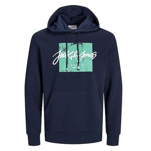 Craquez pour le sweat de la marque JACK & JONES !Coloris : marine CapucheManches longues Imprimé sur la poitrine Composition : 100% Coton