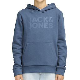 Sweat pour garçon de la marque Jack & Jones- Capuche- Manches longues- Poche kangourou- Coloris : Bleu- Logo Jack & Jones sur l'avant- Composition : 70% coton , 30% polyester