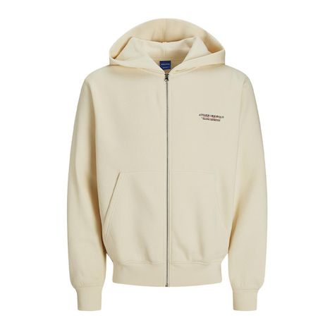 Sweat à capuche homme Jack & Jones !Manches longuesCapucheFermeture à zipColoris : Ecru2 pochesComposition : 70% coton , 30% polyester