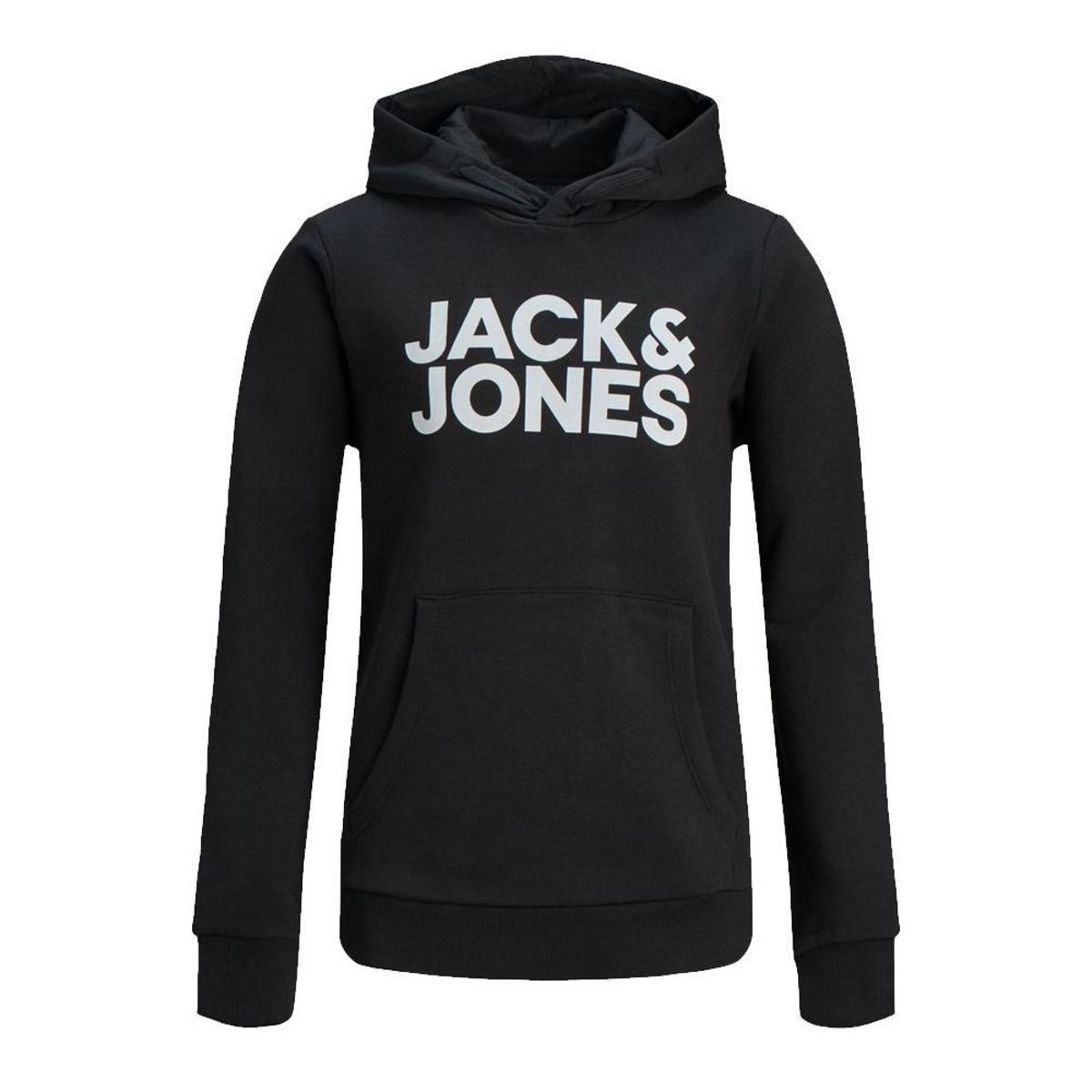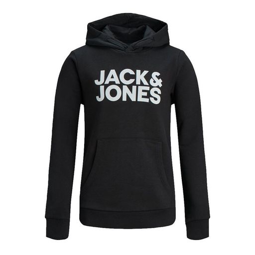 Sweat pour garçon de la marque Jack & Jones Capuche Manches longuesPoche kangourouColoris : Noir Logo Jack & Jones sur l'avantComposition : 70% coton , 30% polyester