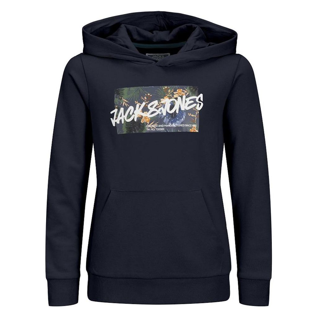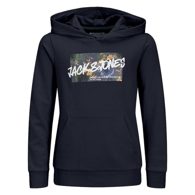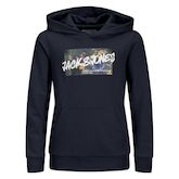 Sweat garçon de la marque Jack & Jones à prix bas !- Manches longues- Capuche- Coloris : Marine- 1 poche Kangourou- Composition : 100% coton