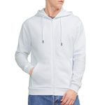 Craquez pour le sweat de la marque JACK & JONES à prix bas !Coloris : Blanc Col capuche + cordonManches longuesPoches kangourouZip de fermetureComposition : 61% Polyester, 39% Coton