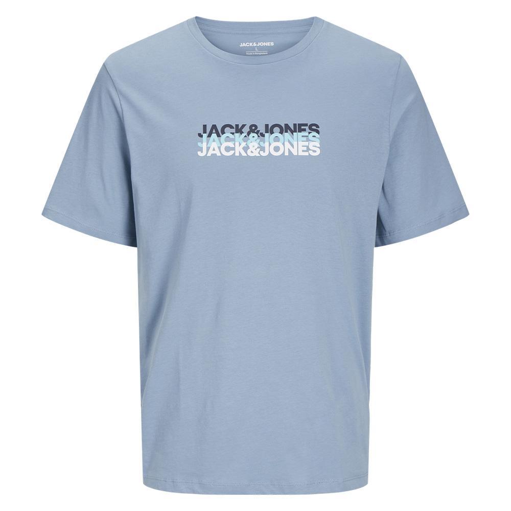 Optez pour ce t-shirt Jack & Jones !- Coloris : Bleu- Col rond- Manches courtes- Inscription sur l'avant- Composition : 100% coton