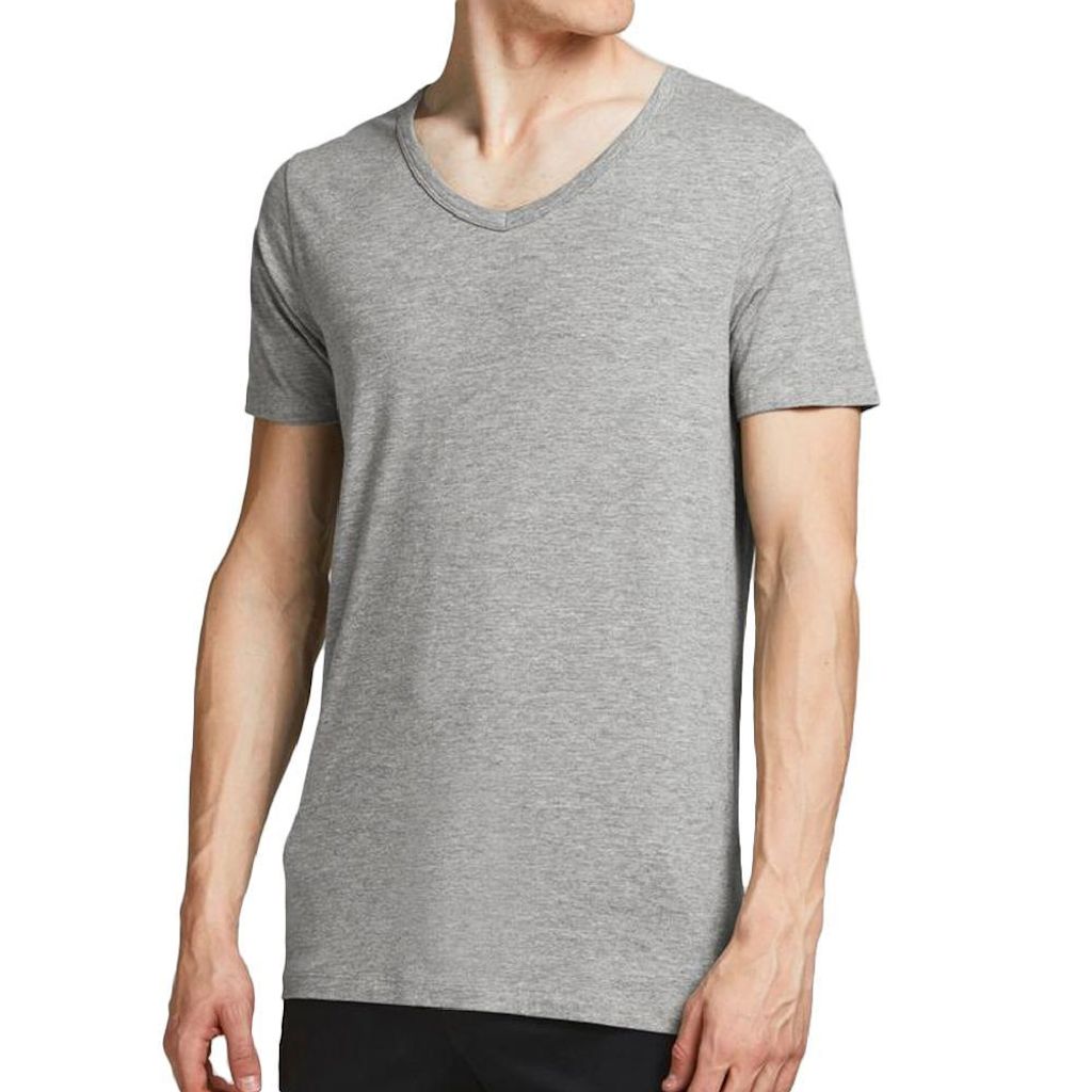 Optez pour ce t-shirt Jack & JonesColoris : GrisCol V Manches courtesComposition : 78% coton, 14% viscose, 8% élasthanne