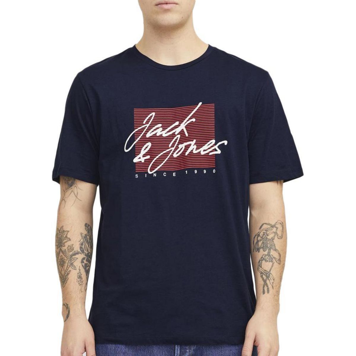 Optez pour ce t-shirt Jack & JonesColoris : MarineCol rondManches courtesComposition : 100% Coton