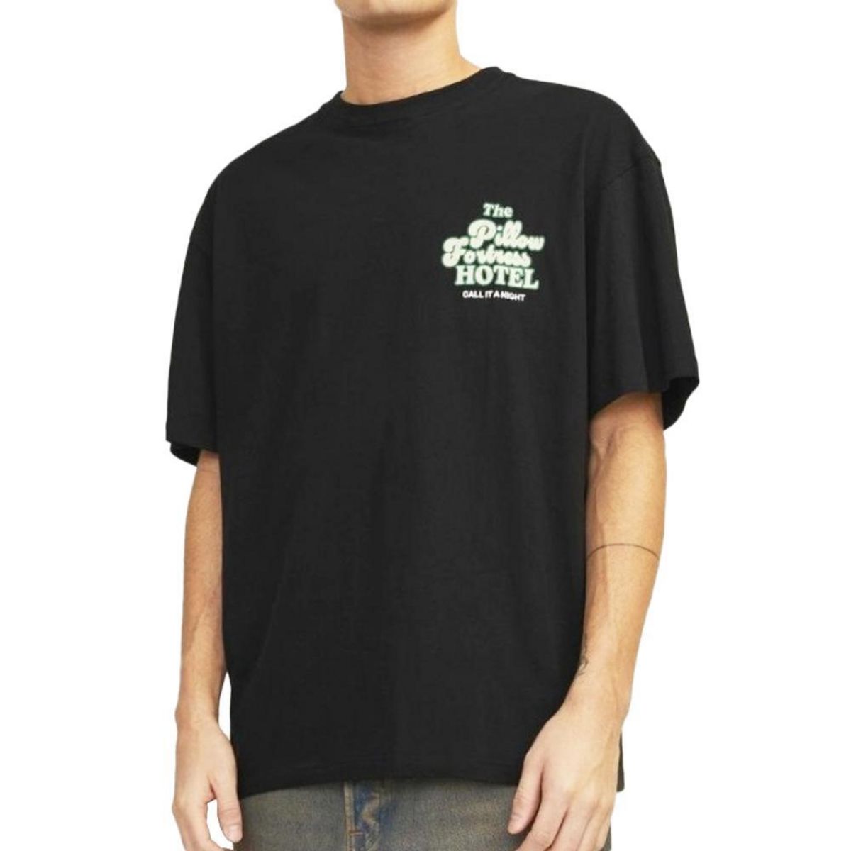 Craquez pour le t-shirt de la marque JACK & JONES !Coloris : Noir Col rond Manches courtes Imprimé poitrine + dos Composition : 100% Coton
