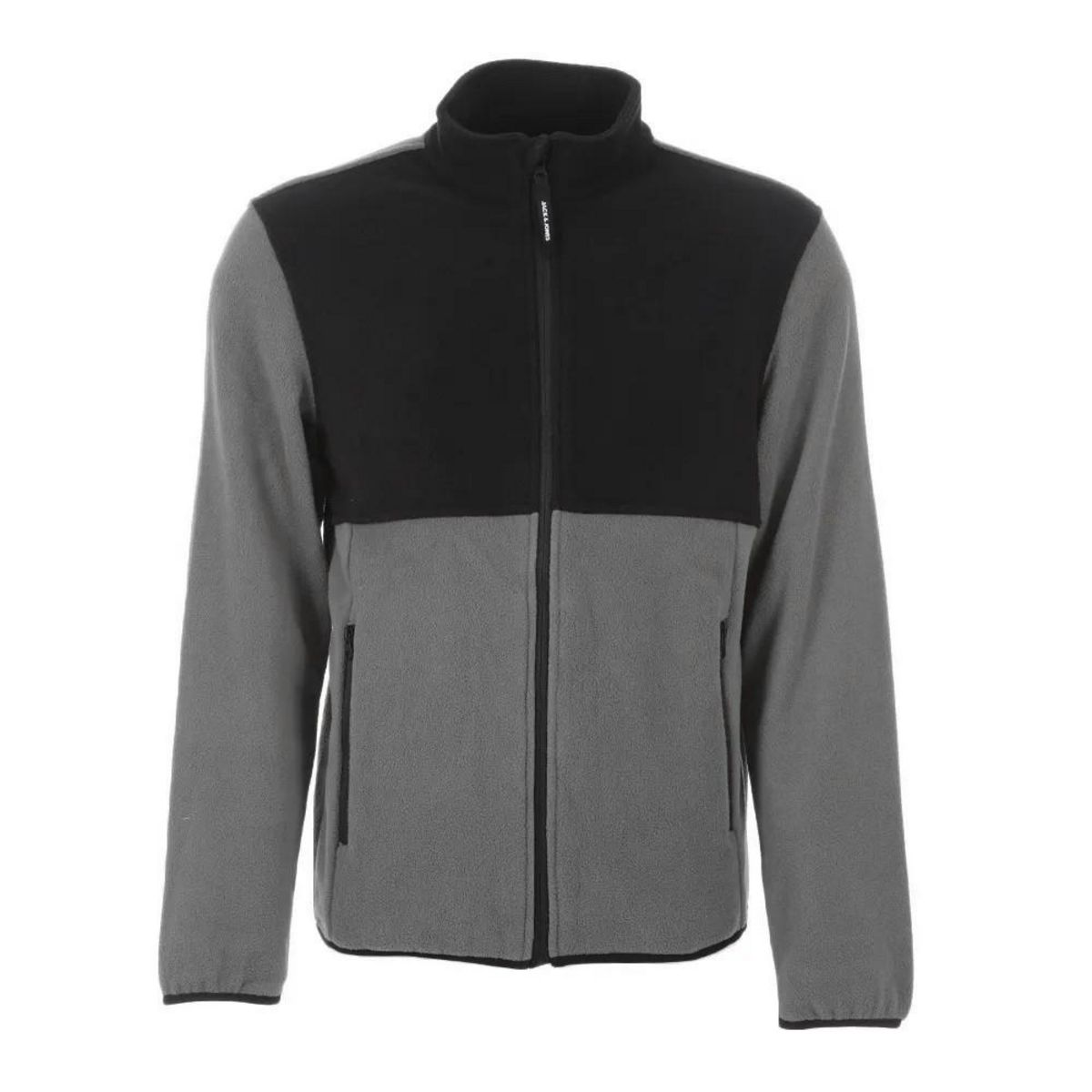 Veste polaire pour homme de la marque Jack & Jones ! Couleurs : Gris/Noir Coupe altique Fermeture zippée Col montant Poches latérales zippées Composition : 100% polyester