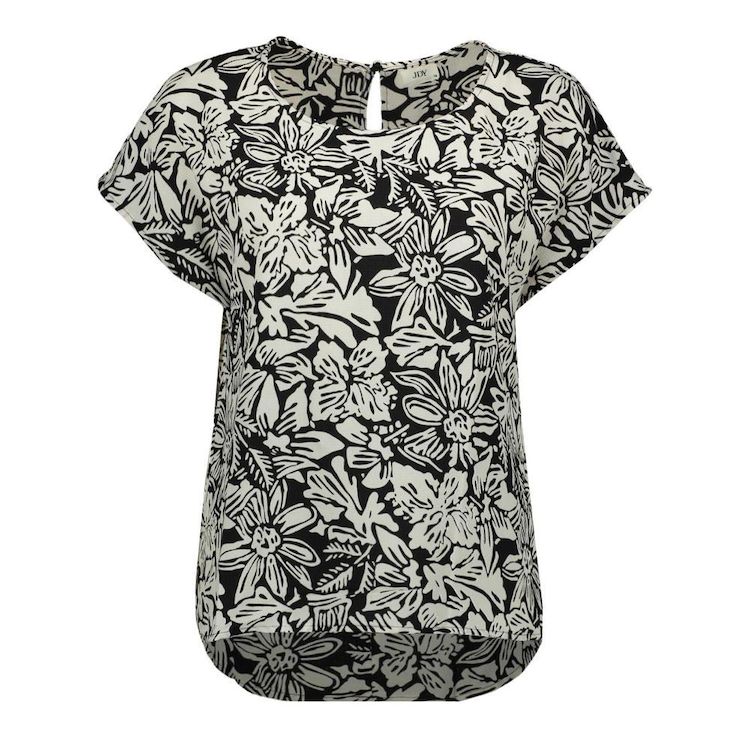 Optez pour la blouse femme de la marque Jacqueline de YongManches courtesCol rondMotif ImpriméColoris : Beige, NoirComposition : 97% polyester , 3% élasthanne