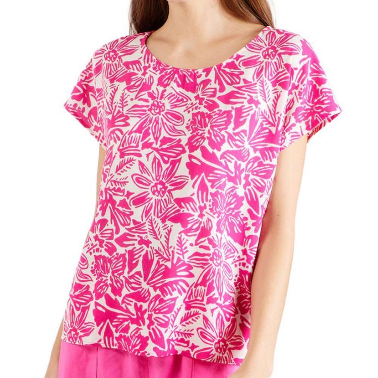 Optez pour la blouse femme de la marque Jacqueline de YongManches courtesCol rondMotif ImpriméColoris : Rose, BlancComposition : 97% polyester , 3% élasthanne