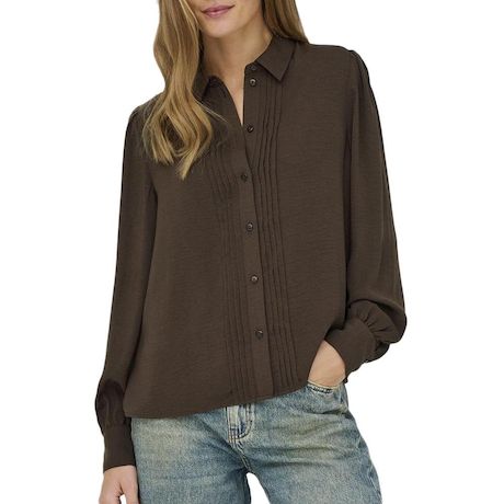 Optez pour cette Blouse JDYColoris : MarronCol chemiseManches longuesComposition : 51% Polyester recyclé, 49% PolyesterPoignets boutonnés