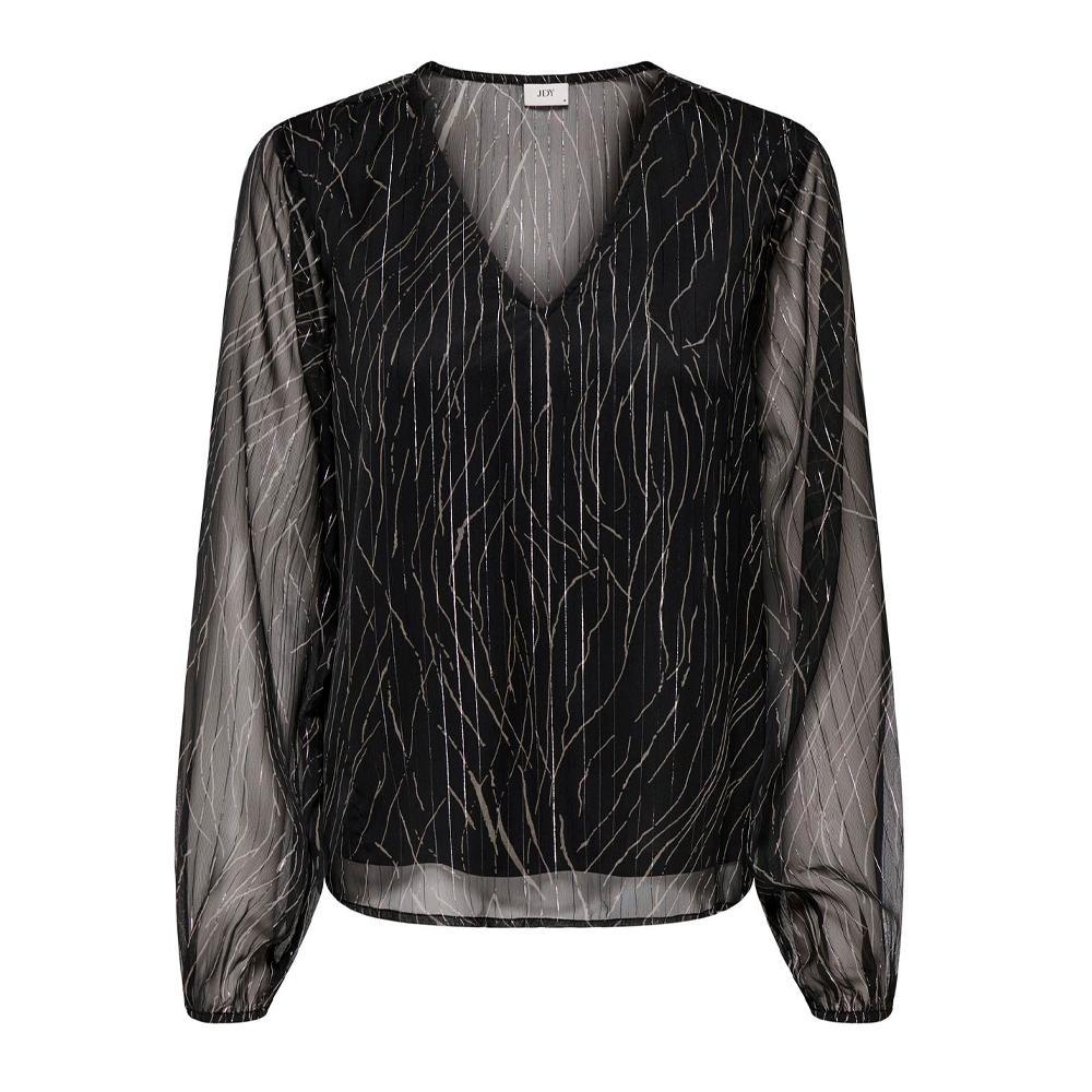 Optez pour la blouse de la marque JDY !Coloris : Noir Col en VManches longuesDoublure en polyester pour une sensation de confortTransparent, PlisCoupe : Regular FitComposition : 97% Polyester 3% Fibres métalliques