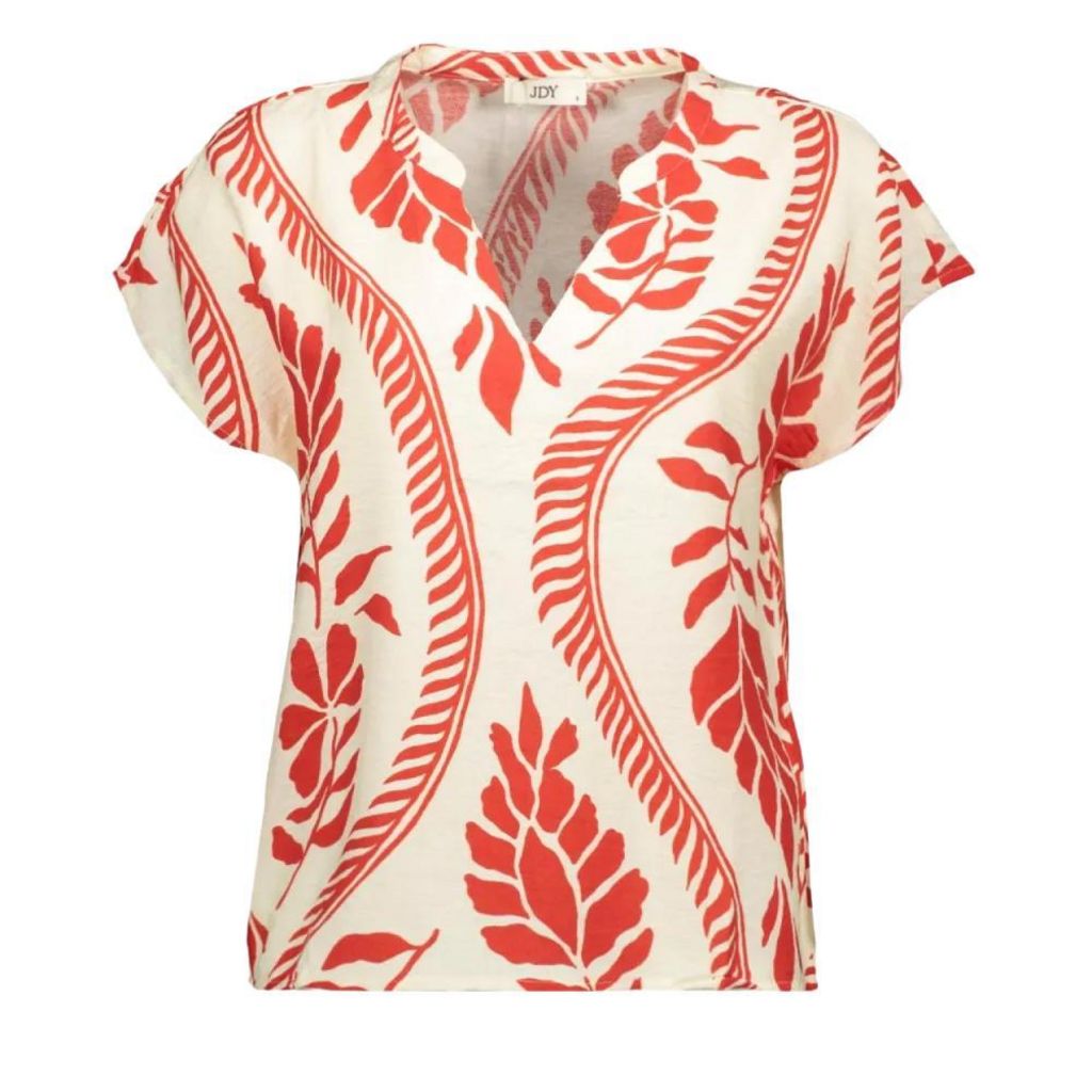 Optez pour la blouse de la marque JDY Coloris : Écru/Rouge Col montant Manches courtes Motif imprimé Composition : 87% viscose, 13% nylon