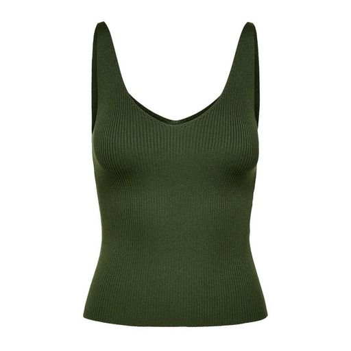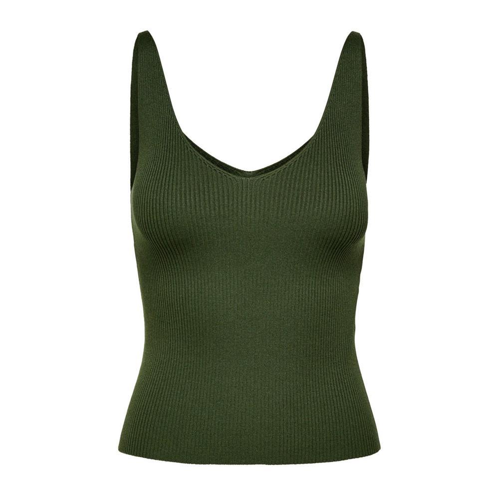 Débardeur en maille pour femme de la marque Jacqueline de Yong ! Sans manchesCol VMaille Tissu Stretch Coloris : KakiComposition : 80% viscose , 20% nylon