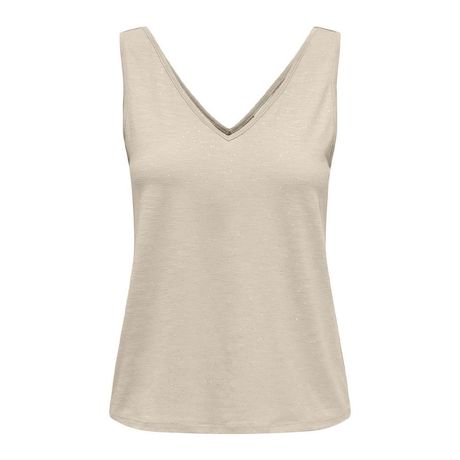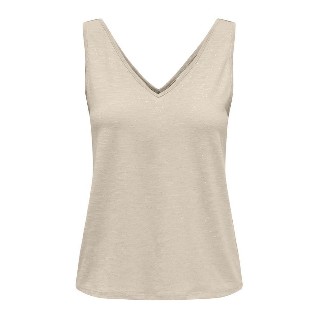 Optez pour ce t-shirt de la marque JDYColoris : Beige Col VSans manchesComposition : 96% polyester, 4% polyester recycléDétail pailleté