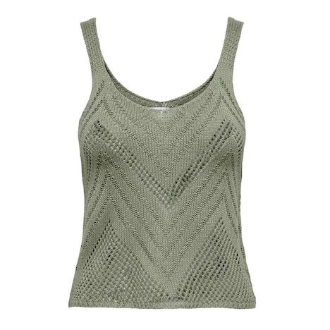 Optez pour le débardeur femme de la marque JDY !- Sans manches- Col rond- Maille- Coloris : Kaki- Composition : 100% acrylique