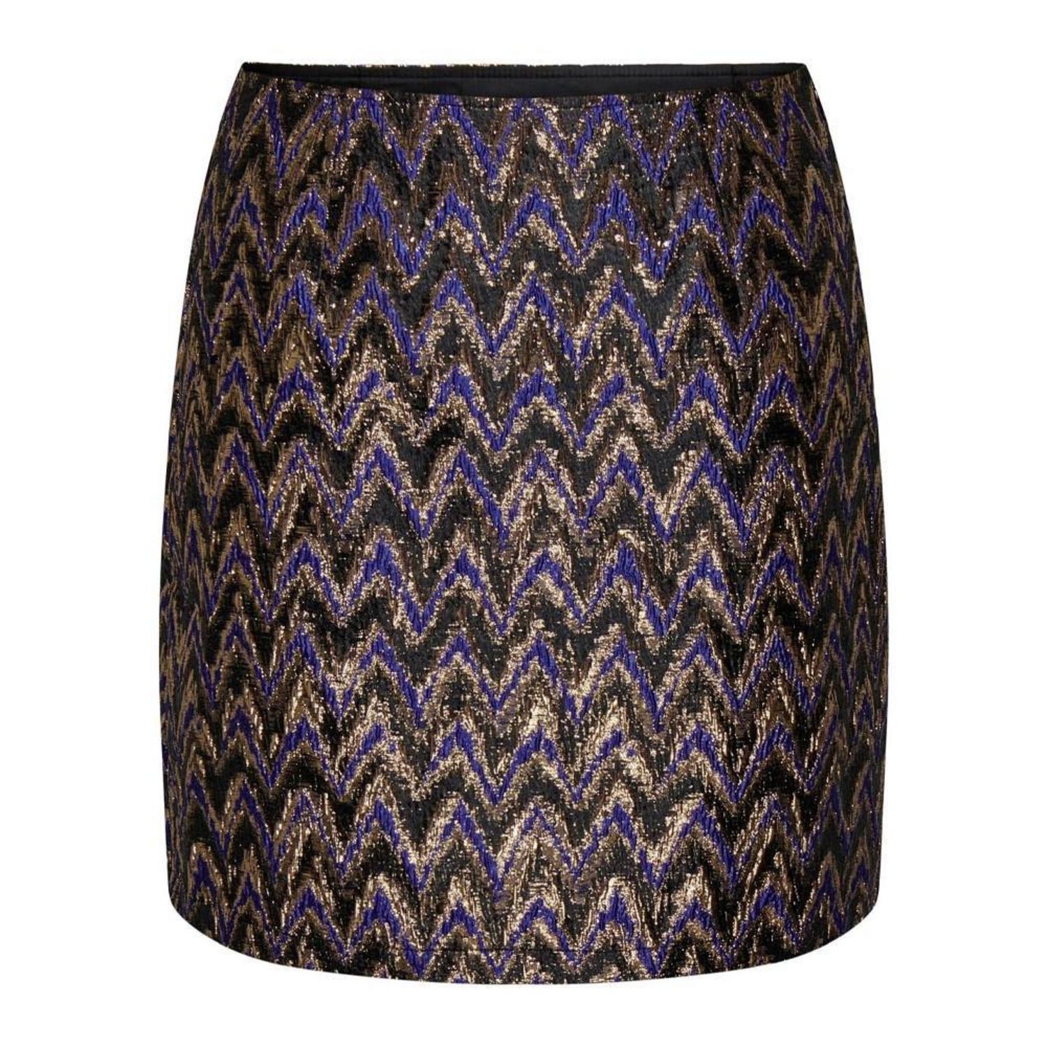 Craquez pour cette jupe de la marque JDY ! Coloris : noir, bleu, doré, gris Taille élastique Avec motifs Composition : 100% polyester