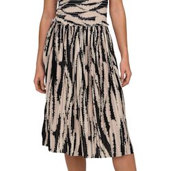 Craquez pour la jupe de la marque JDY à prix bas !- Coloris : Beige/Noir- Mi-longue- Plissé- Taille élastique- Tissu imprimé- Composition : 100% Polyester