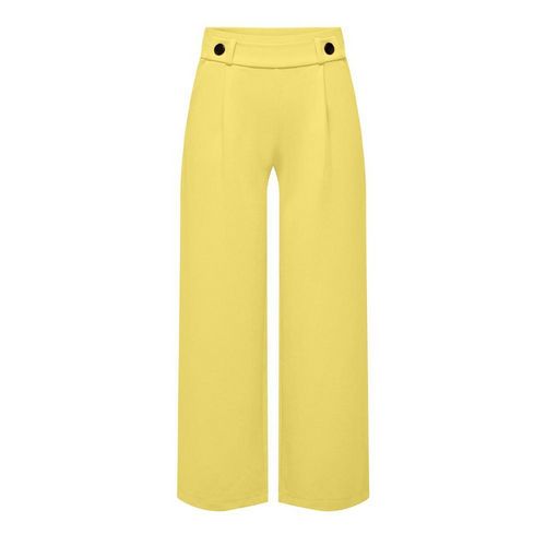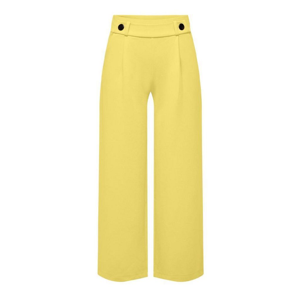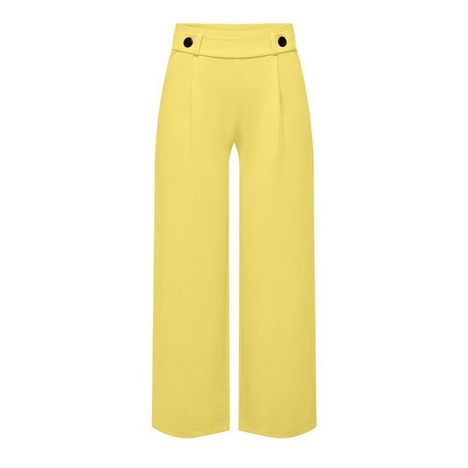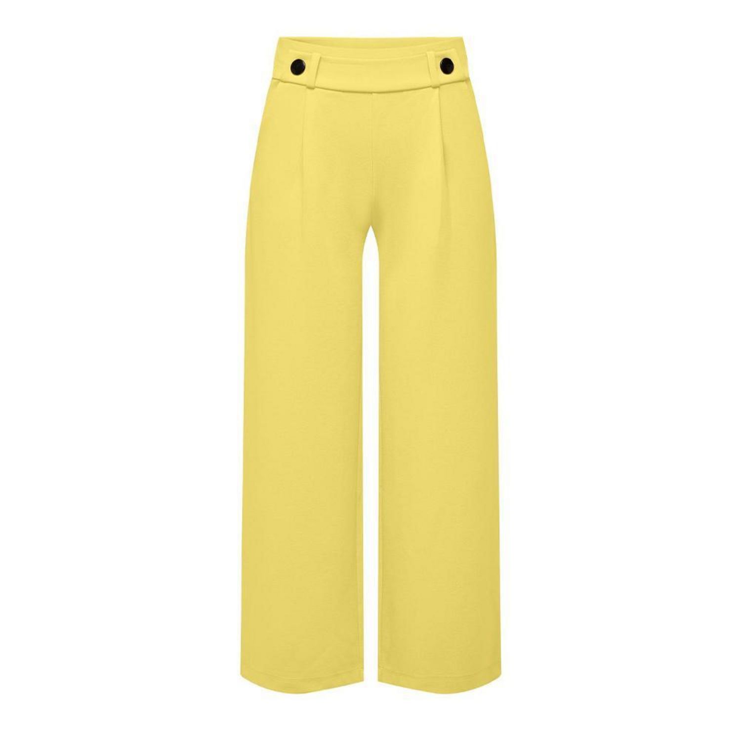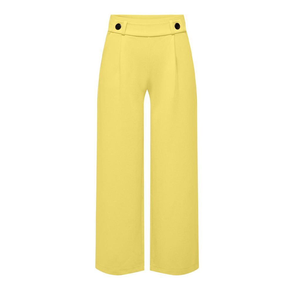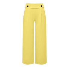 Craquez pour le pantalon femme de la marque JDY ! Coloris : Jaune Coupe Ample Boutons à la tailleLégèrement plissé sur le devantTissu stretch2 poche latérales Composition : 95% Polyester, 5% Élasthanne